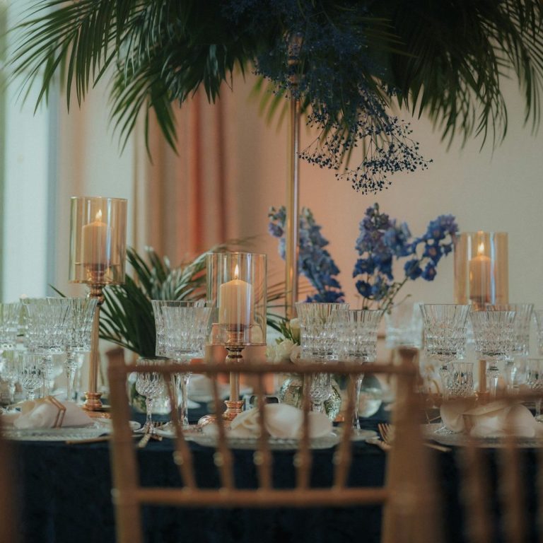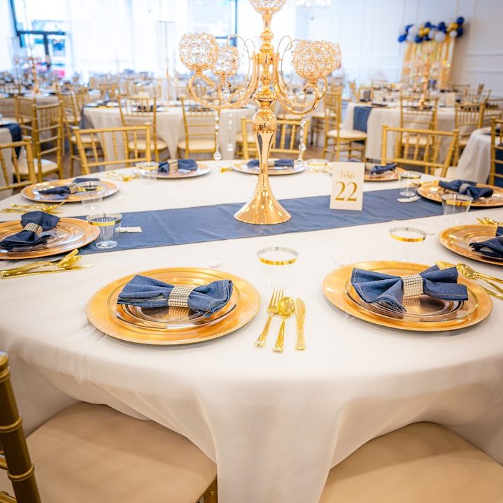 Burgundy, navy blue, and gold create a timeless and sophisticated ambiance.